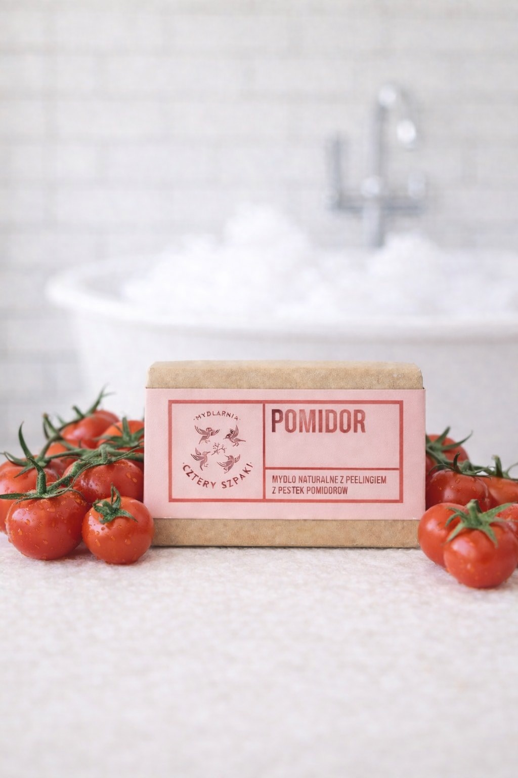 Mydło Pomidor zachwyca świeżym, zielonym zapachem z nutami cytryny, geranium, oregano i eukaliptusa cytrynowego.